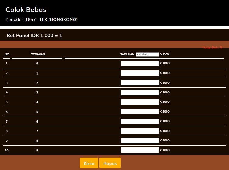 Dan seterusnya untuk setiap kembaran yang berhasil ditebak, otomatis mendapat kelipatan [Indeks kemenangan untuk colok bebas]